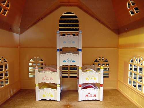 6張床全部疊在一起~高達2層樓喔~每天睡覺前要先「攀岩」~
