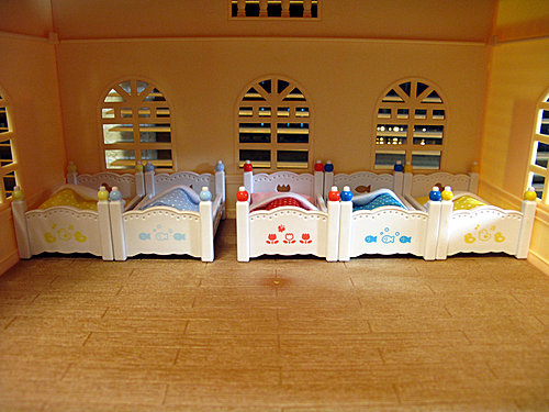 放到新的三層屋的二樓裡~最寬那一面,可以放下5張小床~