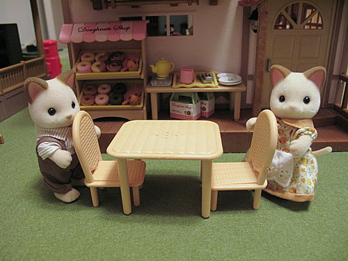 開店囉~奶油貓爸爸媽媽忙著搬桌椅~